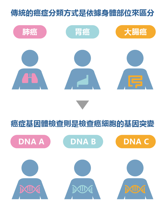 基因體檢查,是指對人體遺傳密碼中是否存在基因突變或有害變化進行檢查。透過分析癌症基因體中的局部變異,可以找出最適合特定患者癌症的治療方式,或直接針對特定基因異常進行標靶治療。